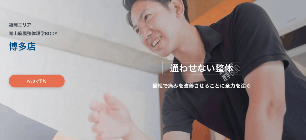 筋膜の癒着や筋肉のバランスを整えることで、肩こりや腰痛などの慢性的な不調の根本改善を目指します。また「通わせない整体」を理念としており、短期間での改善を目標とした施術方針を採用しています。口コミ評価も高く、福岡でも人気の整体院の一つです。