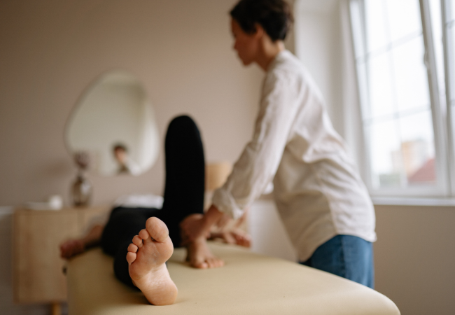 O脚を改善もしくは予防するためには、自宅でもできるセルフケアに取り組むのも効果的です。ここでは、自宅の普段の生活や練習の前後に取り組めるセルフケアの方法について具体例を挙げながら解説します。