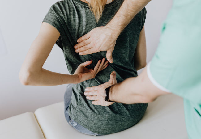 コルセットや骨盤ベルトを巻くことで、お腹周りが適度に圧迫されて腹圧が高まります。これにより、ダメージを受けて不安定になっている腰椎(腰の骨)をしっかりと安定させる効果があります。