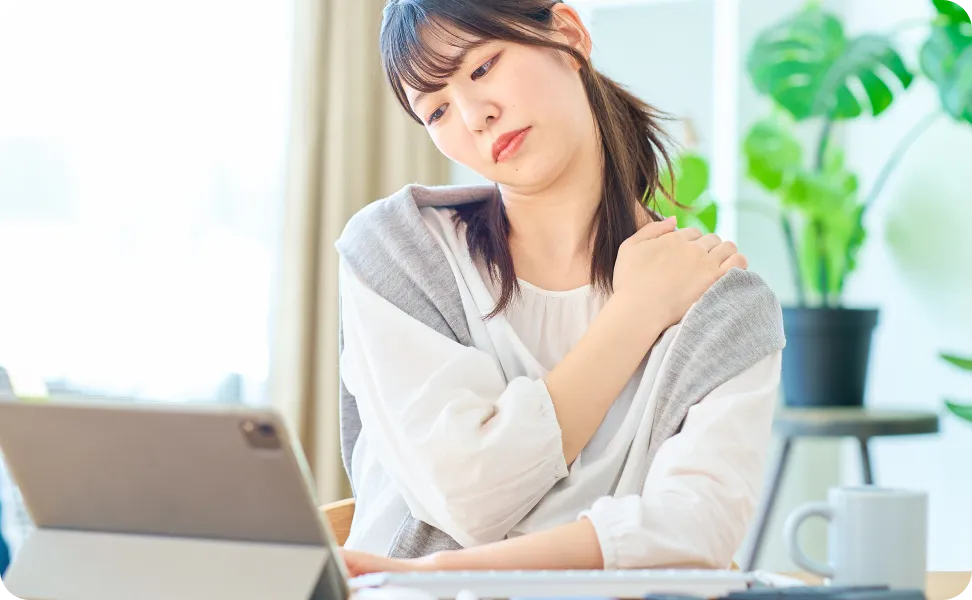 首肩の緊張をほぐし、首の骨格矯正と姿勢改善で頭痛の根本原因にアプローチします。